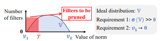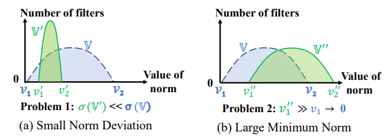 norm-based criterion은 작은 norm을 가진 필터가 덜 중요하다는 추정아래에 larger norm을 계속 유지한다.